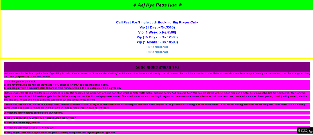 A significant betting inclination inside the subcontinent typically the game of Satta matka expects you to select typically the best amount regarding winning the fit and achieving the Satta matka at typically the procedure. It is going to also be tremendously rewarding as the victor takes done up this kind of match which were some sort of massive financial advantage for you.